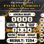 Prediksi Boss Togel Cambodia Sabtu 27 Desember 2025
