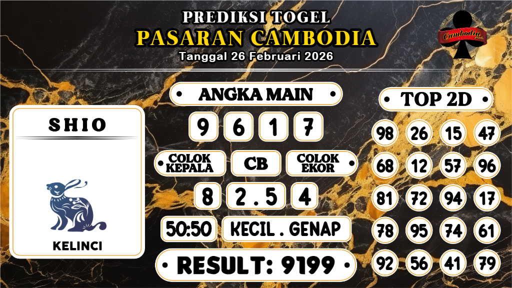 Prediksi Togel Kamboja Pools 26 Februari 2026