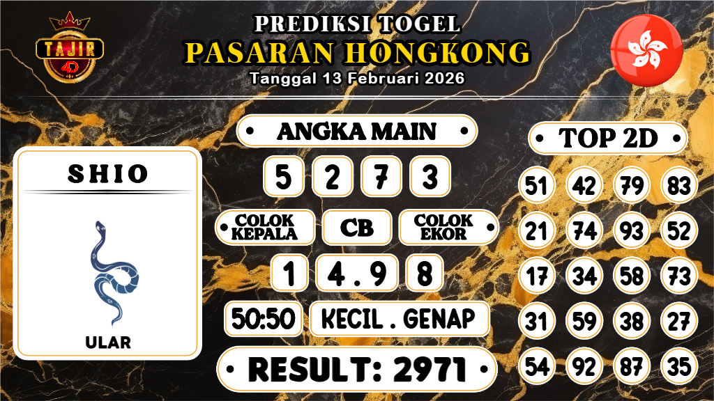 Prediksi yang bagus dan jitu harus dimainkan hanya pada Bandar Togel Terpercaya. Mengapa? Karena banyak sekali Bandar Togel Online di luar sana yang tidak bertanggungjawab atau biasa disebut Bandar Rampok. Untuk itu Kami Prediksi Boss sangat merekomendasikan Agen Togel Online Tajir4D yang sudah sangat terpercaya sejak 2015 dan sudah ribuan member berhasil withdraw dengan nominal Ratusan juta setiap harinya. Demikianlah Prediksi HK hari Ini Jumat 13 Februari 2026 yang di berikan di atas. Salam Jackpot !