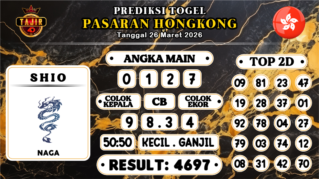 Prediksi yang bagus dan jitu harus dimainkan hanya pada Bandar Togel Terpercaya. Mengapa? Karena banyak sekali Bandar Togel Online di luar sana yang tidak bertanggungjawab atau biasa disebut Bandar Rampok. Untuk itu Kami Prediksi Boss sangat merekomendasikan Agen Togel Online Tajir4D yang sudah sangat terpercaya sejak 2015 dan sudah ribuan member berhasil withdraw dengan nominal Ratusan juta setiap harinya. Demikianlah Prediksi HK hari Ini Kamis 26 Maret 2026
