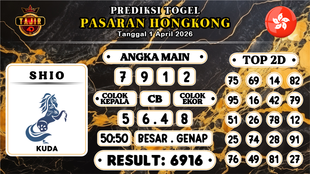 Prediksi yang bagus dan jitu harus dimainkan hanya pada Bandar Togel Terpercaya. Mengapa? Karena banyak sekali Bandar Togel Online di luar sana yang tidak bertanggungjawab atau biasa disebut Bandar Rampok. Untuk itu Kami Prediksi Boss sangat merekomendasikan Agen Togel Online Tajir4D yang sudah sangat terpercaya sejak 2015 dan sudah ribuan member berhasil withdraw dengan nominal Ratusan juta setiap harinya. Demikianlah Prediksi HK hari Ini Rabu 1 April 2026