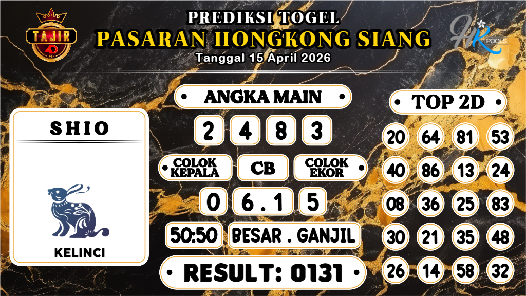 Prediksi yang bagus dan jitu harus dimainkan hanya pada Bandar Togel Terpercaya. Mengapa? Karena banyak sekali Bandar Togel Online di luar sana yang tidak bertanggungjawab atau biasa disebut Bandar Rampok. Untuk itu Kami Prediksi Boss sangat merekomendasikan Agen Togel Online Tajir4D yang sudah sangat terpercaya sejak 2015 dan sudah ribuan member berhasil withdraw dengan nominal Ratusan juta setiap harinya. Demikianlah Prediksi HK Siang hari Ini Rabu 15 April 2026