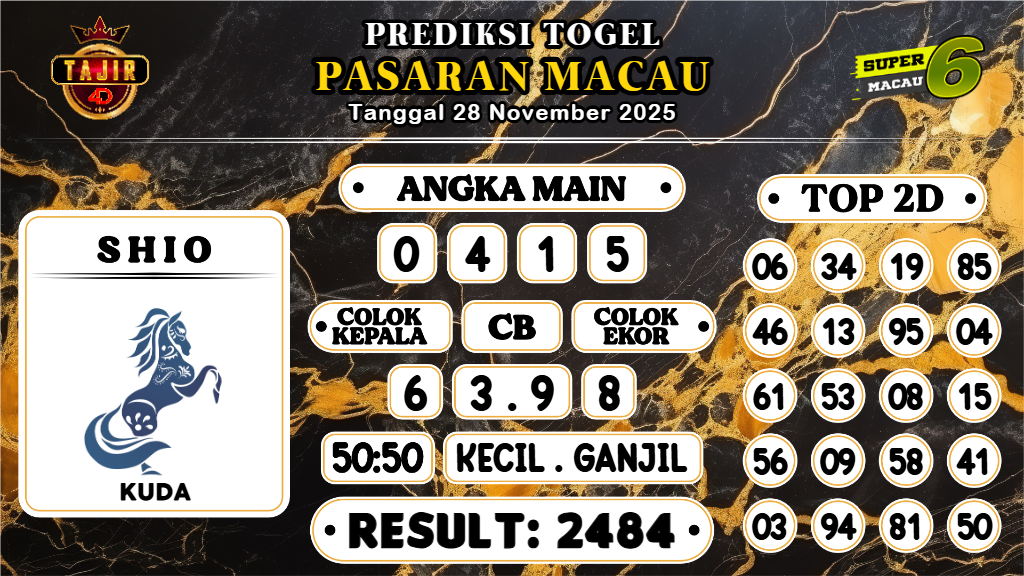 Prediksi yang bagus dan jitu harus dimainkan hanya pada Bandar Togel Terpercaya. Mengapa? Karena banyak sekali Bandar Togel Online di luar sana yang tidak bertanggungjawab atau biasa disebut Bandar Rampok. Untuk itu Kami Prediksi Boss sangat merekomendasikan Agen Togel Online Tajir4D yang sudah sangat terpercaya sejak 2015 dan sudah ribuan member berhasil withdraw dengan nominal Ratusan juta setiap harinya. Demikianlah Prediksi Macau Hari Ini Jumat 28 November 2025 yang diberikan di atas. Salam Jackpot!