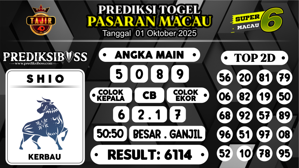 Prediksi Boss Togel Macau Rabu 01 Oktober 2025