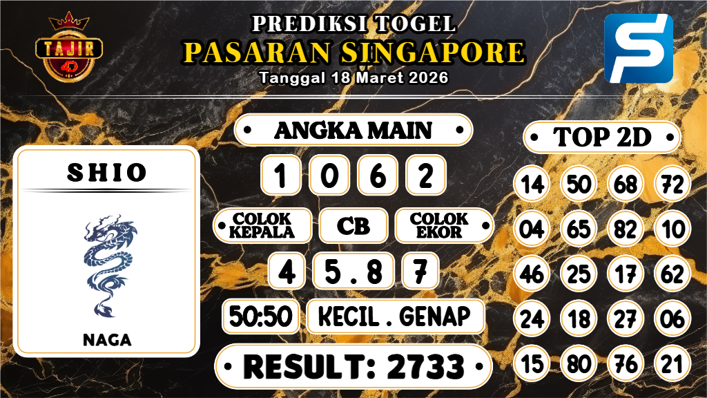 Prediksi yang bagus dan jitu harus dimainkan hanya pada Bandar Togel Terpercaya. Mengapa? Karena banyak sekali Bandar Togel Online di luar sana yang tidak bertanggungjawab atau biasa disebut Bandar Rampok. Untuk itu Kami Prediksi Boss sangat merekomendasikan Agen Togel Online Tajir4D yang sudah sangat terpercaya sejak 2015 dan sudah ribuan member berhasil withdraw dengan nominal Ratusan juta setiap harinya. Demikianlah Prediksi SGP Hari Ini 18 Maret 2026 yang diberikan di atas. Salam Jackpot!