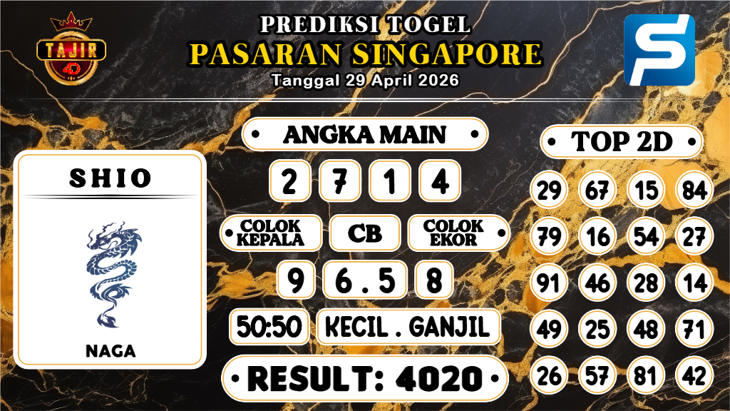 Prediksi yang bagus dan jitu harus dimainkan hanya pada Bandar Togel Terpercaya. Mengapa? Karena banyak sekali Bandar Togel Online di luar sana yang tidak bertanggungjawab atau biasa disebut Bandar Rampok. Untuk itu Kami Prediksi Boss sangat merekomendasikan Agen Togel Online Tajir4D yang sudah sangat terpercaya sejak 2015 dan sudah ribuan member berhasil withdraw dengan nominal Ratusan juta setiap harinya. Demikianlah Prediksi SGP Rabu 29 April 2026 yang diberikan di atas. Salam Jackpot!