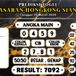 Prediksi Boss Togel HK Siang Kamis 26 Maret 2026