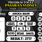 Prediksi Boss Togel Sidney Jumat 10 Oktober 2025