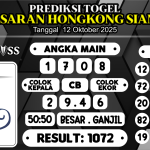Prediksi Boss Togel HK Siang Minggu 12 Oktober 2025