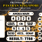 Prediksi Boss Togel SGP Sabtu 7 Maret 2026