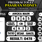 Prediksi Boss Togel Sidney Sabtu 15 November 2025