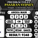 Prediksi Boss Togel Sidney Kamis 13 November 2025