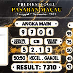 Prediksi Macau Togel 07 Desember 2025 Prediksi Boss macau hari ini yang kami berikan hari ini pastinya sudah berdasarkan rumus dari Master Togel serta Suhu yang sangat berpengalaman di Bidang Toto Gelap. Angka Keluaran togel yang kami berikan juga sangat Jitu dan Akurat bukan Abal-abal karena kami hanya memberikan Angka Jitu yang Pasti Keluar. Syair […]