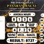 Prediksi Macau Togel 12 Desember 2025 Prediksi Boss macau hari ini yang kami berikan hari ini pastinya sudah berdasarkan rumus dari Master Togel serta Suhu yang sangat berpengalaman di Bidang Toto Gelap. Angka Keluaran togel yang kami berikan juga sangat Jitu dan Akurat bukan Abal-abal karena kami hanya memberikan Angka Jitu yang Pasti Keluar. Syair […]