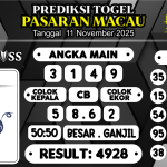 Prediksi Macau Togel 11 November 2025 Prediksi Boss macau hari ini yang kami berikan hari ini pastinya sudah berdasarkan rumus dari Master Togel serta Suhu yang sangat berpengalaman di Bidang Toto Gelap. Angka Keluaran togel yang kami berikan juga sangat Jitu dan Akurat bukan Abal-abal karena kami hanya memberikan Angka Jitu yang Pasti Keluar. Syair […]