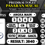 Prediksi Boss Togel Macau Sabtu 15 November 2025