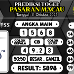 Prediksi Boss Togel Macau Sabtu 11 Oktober 2025